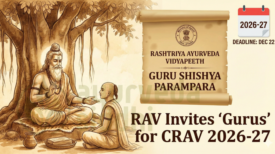 New Delhi: The Rashtriya Ayurveda Vidyapeeth (RAV), an autonomous organization under the Ministry of Ayush, Government of India, has officially initiated the selection process for “Gurus” and “Institutional Training Centres” for the 2026-27 academic session.